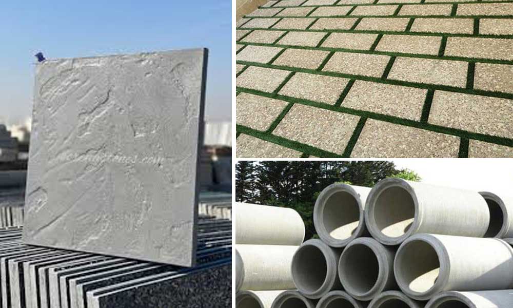 • تولید بلوک‌های سیمانی، جدول، لوله‌های بتنی و قطعات پیش‌ساخته
