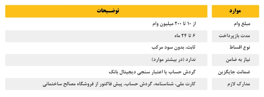 اطلاعات جدول زیر بیانگر شرایط کلی وام اعتباری بانک مهر می باشد:
